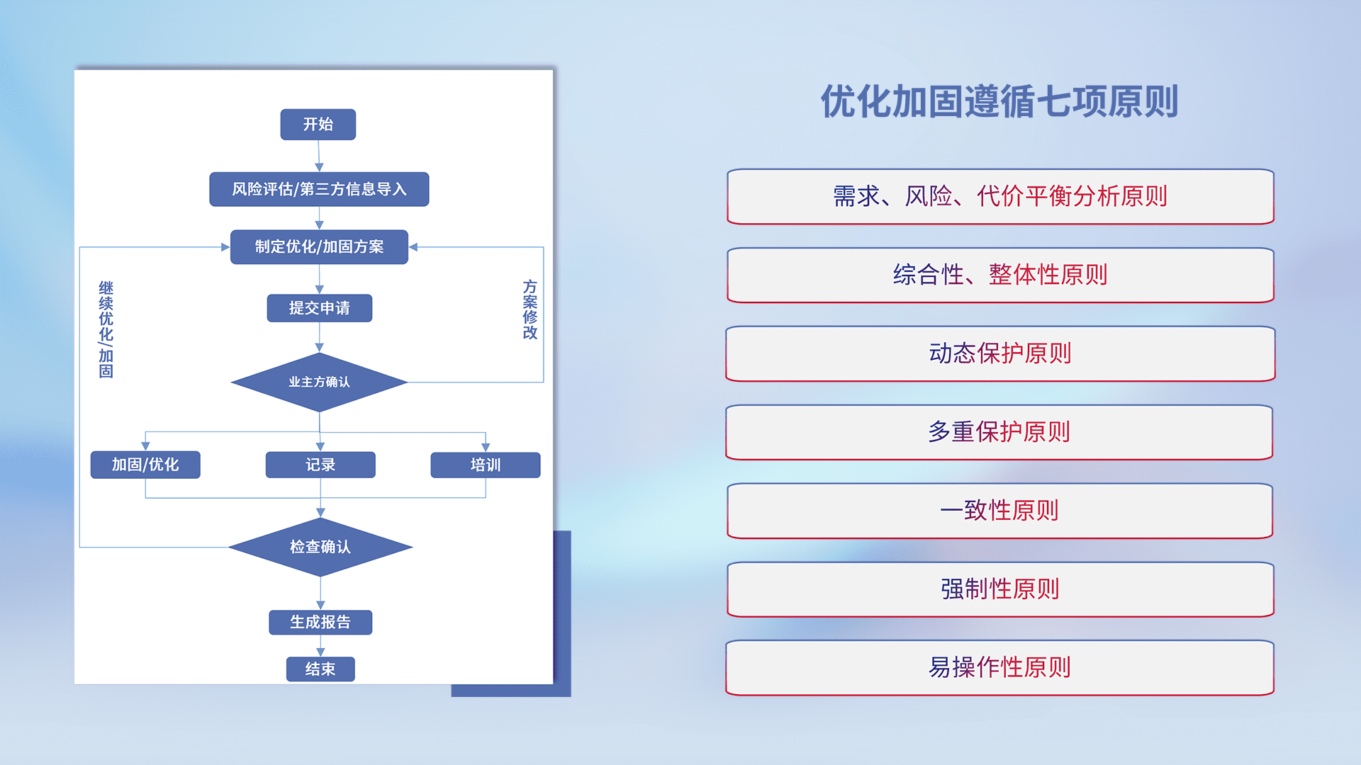 最大程度利用现有资产,,,,对评估发现的问题进行封堵与整改,,防止漏洞被利用,,,提升整体网络安全性,,,为客户带来高标准的优化加固服务。。